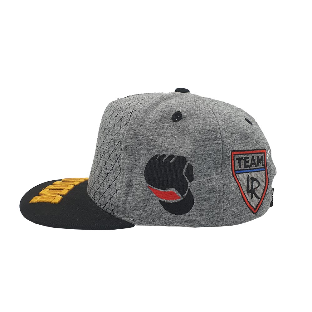 Lauren Rose created this TEAM LR MMA snapback with MMA in gold 3D embroidery on the visor.