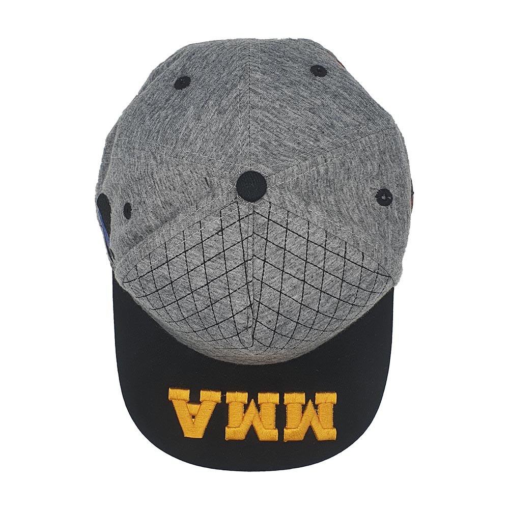 Visor: MMA 3D embroidered in yellow. Underneath the visor you see the light in the ceiling of the cage, if you experienced a KO, you will know how this feels!