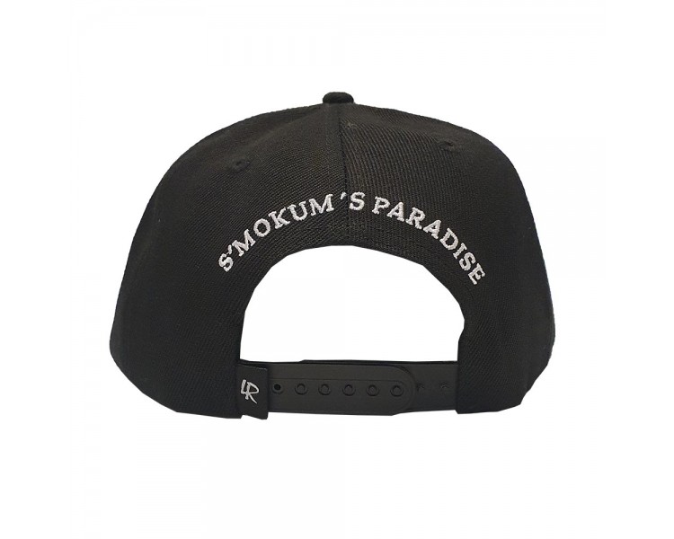 Back of the hat: This is a snapback, Smokums paradise embroidery in white